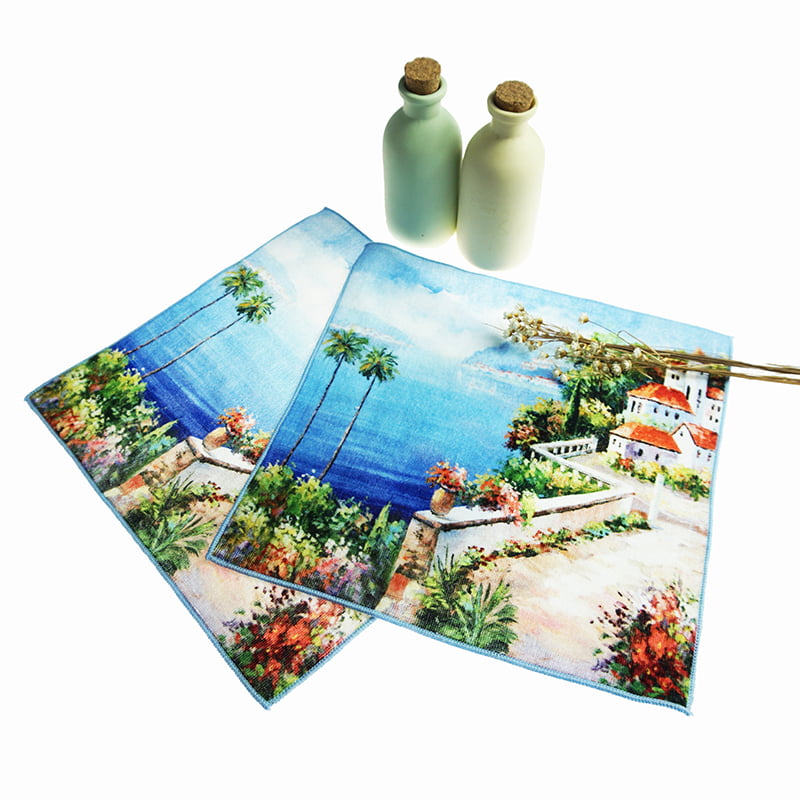 Dette firkantede tørklæde er lavet af 400 gsm bomuldsstof ved hjælp af digital udskrivningsteknologi og importeret blæk, som er energibesparende og miljøvenlig og har en lav MOQ.
