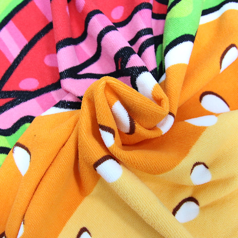 Denne ultra fine fiber store strandhåndklæde med kvaster, med en diameter på 160 cm, er trykt med et aktivt tryk, der absorberer vand og sved og er åndbar og let at tørre.3