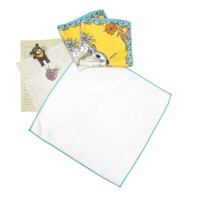 Denne polyester bomuldsvarmeoverførsel trykt firkantet tørklæde har levende og levende mønstre og bruges normalt til sportsbegivenhedsstøtte og andre formål.